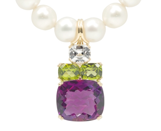 18ct gold and gemstone earrings and pearl enhancer