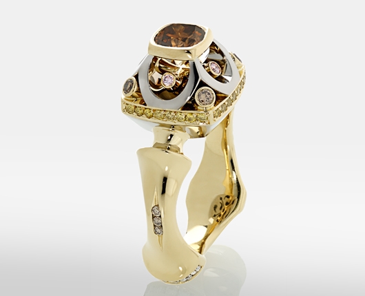 18ct yellow and white gold ring with fancy cognac, pink, yellow and white diamonds
